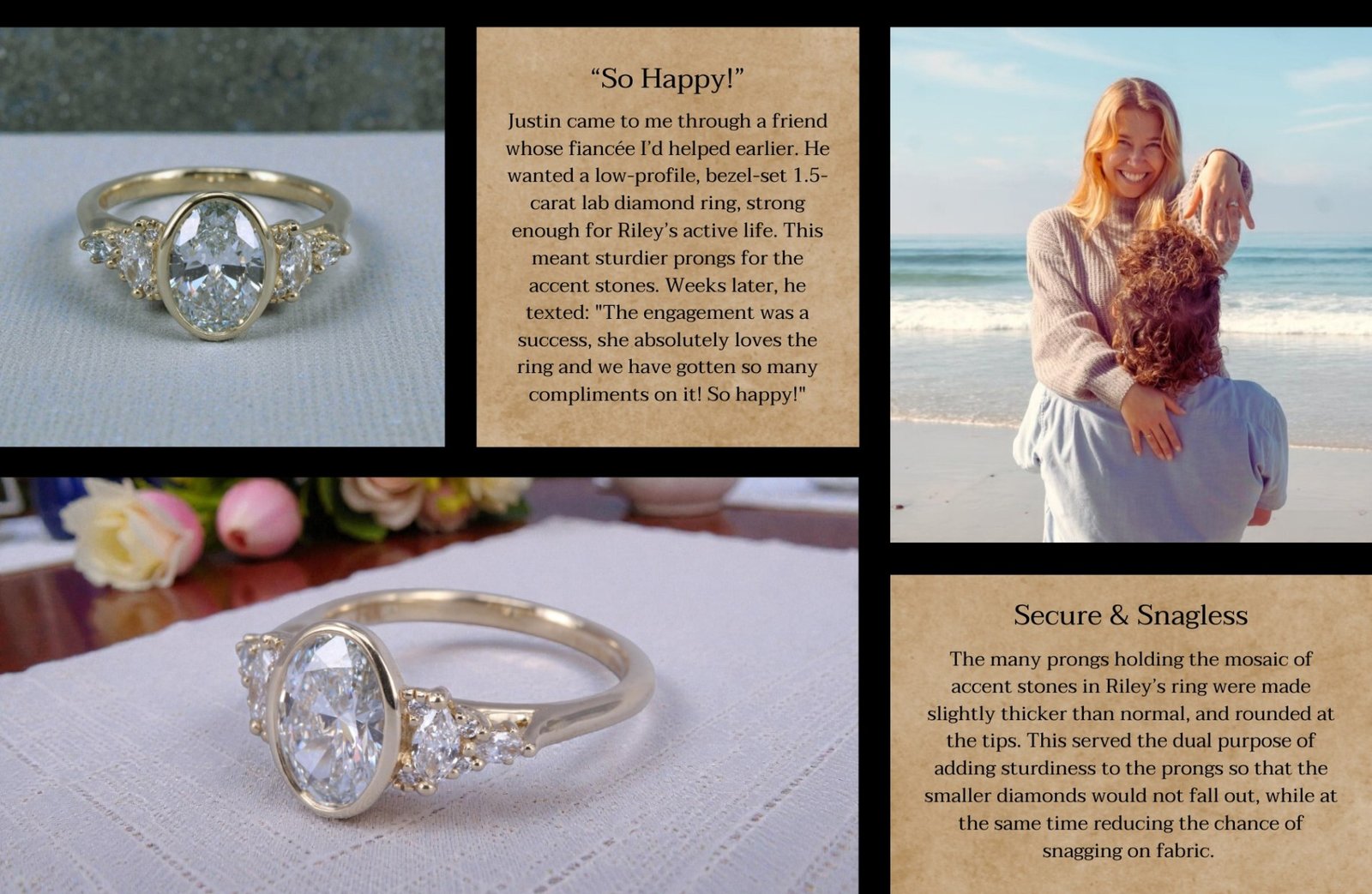 The bezel’s seamless edge enhances the diamond’s brilliance while offering exceptional protection, giving the ring both elegance and everyday practicality.
