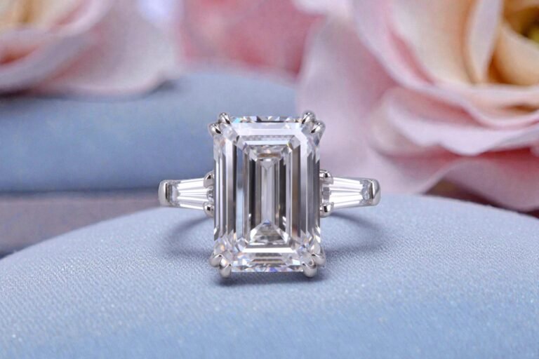 Known for its stepped facets and bold, architectural presence, the emerald cut creates a look that is both refined and powerful.