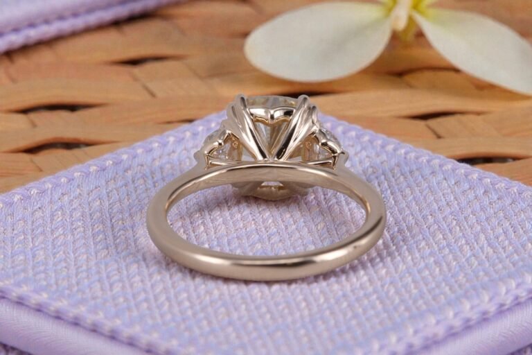 Seen from the back, the craftsmanship of this custom–made ring is especially striking.