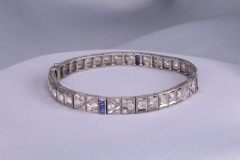 The cut’s straight edges allowed stones to sit flush in channels, creating flawless ribbons of light — something impossible to achieve with brilliant cuts. Deco jewelers also used French cut sapphires and rubies to frame diamonds in dramatic color contrasts that remain highly collectible today.